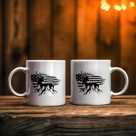 US Flag Deer Hunting Coffee Mug