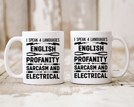 I Speak 4 Languages English Profanity Sarcasm And Electrical Electrician Coffee Mug