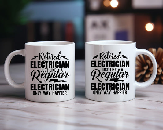 Retired Electrician Just Like A Regular Electrician Only Way Happier Electrician Coffee Mug B