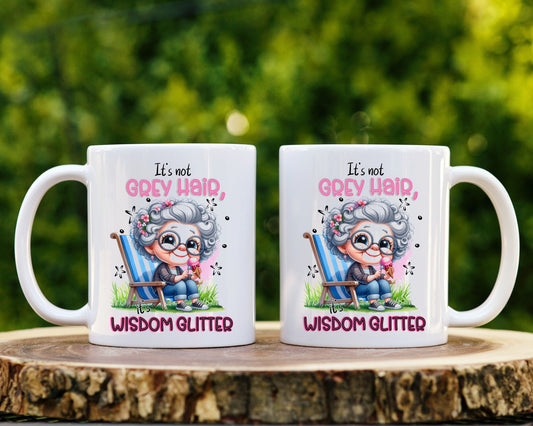 It's Not Grey Hair It's Wisdom Glitter Grandma Coffee Mug