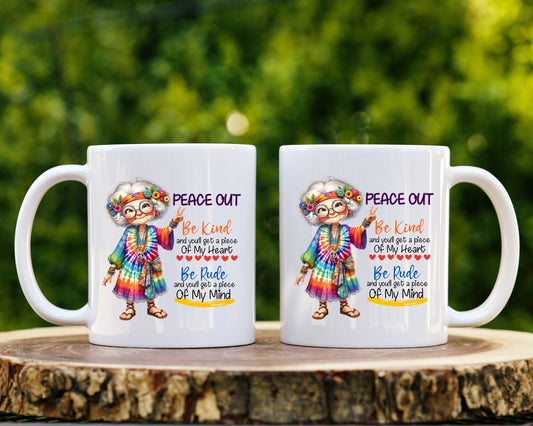 Peace Out Be Kind And You'll Have A Piece Of My Heart Grandma Coffee Mug