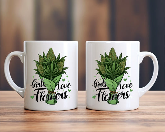 Girls Love Flowers Marijuana Weed Coffee Mugs