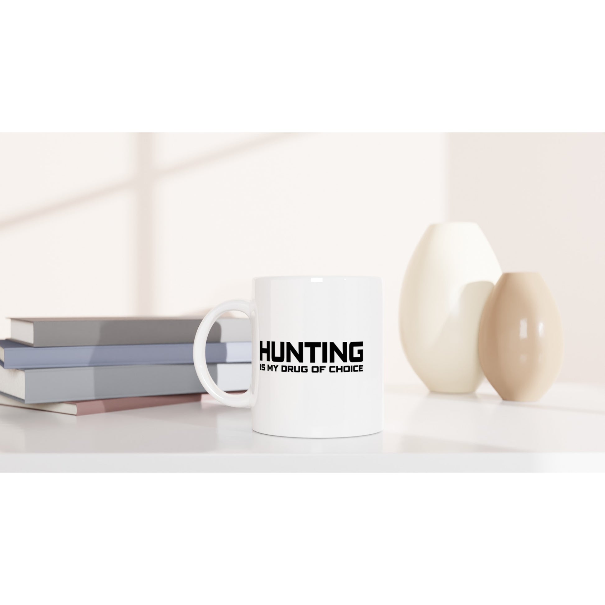 Hunting Is My Drug Of Choice Hunting Coffee Mug. This beautiful ceramic mug is perfect for any event of the day. Your morning coffee, a hot chocolate, or any other hot beverage you enjoy. The mug is glossy white and the prints come out beautifully and vividly on it. The print retains its quality and luster when used in both microwaves and the dishwasher.