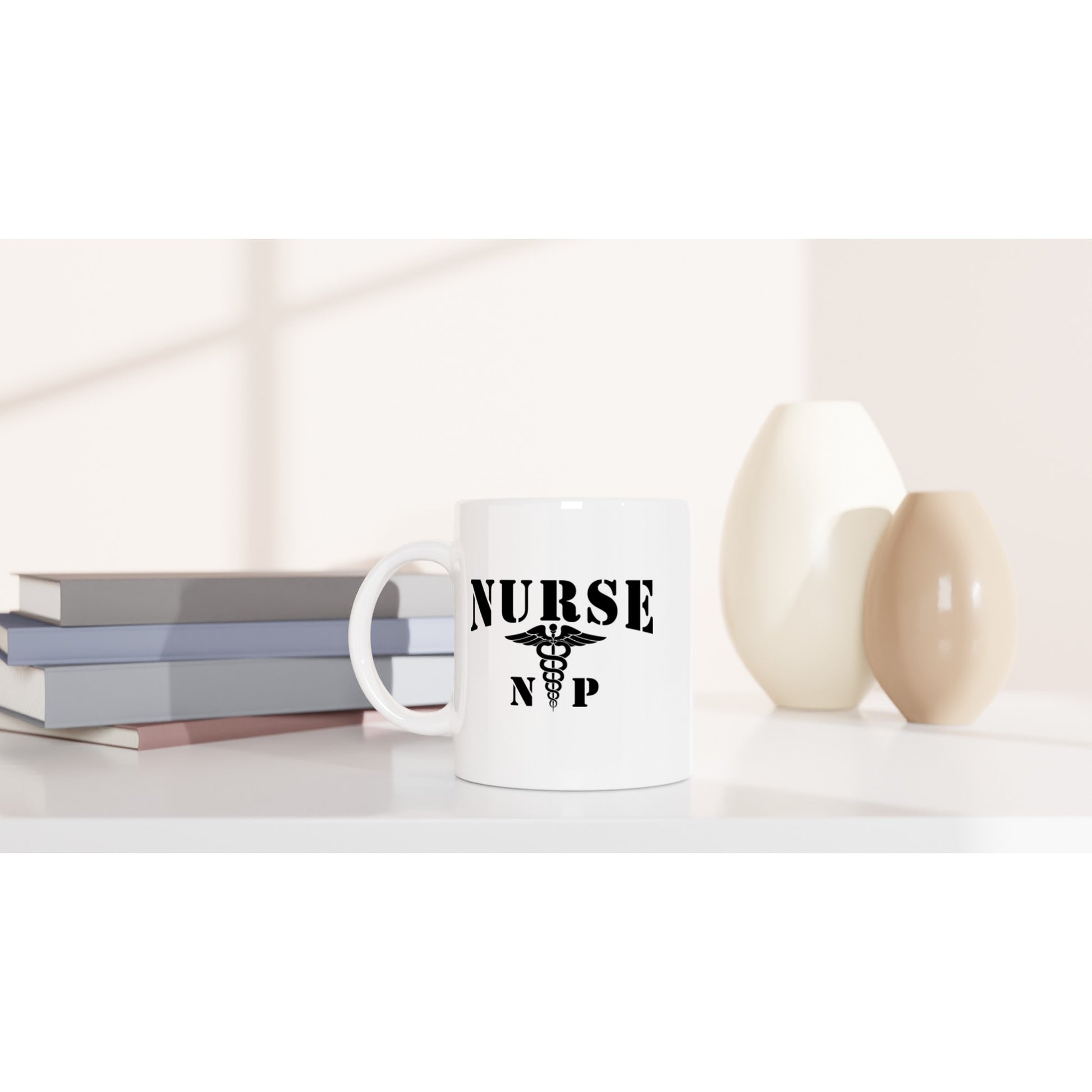 NP Nurse Nursing Medical Coffee Mug. This beautiful ceramic mug is perfect for any event of the day. Your morning coffee, a hot chocolate, or any other hot beverage you enjoy. The mug is glossy white and the prints come out beautifully and vividly on it. The print retains its quality and luster when used in both microwaves and the dishwasher.