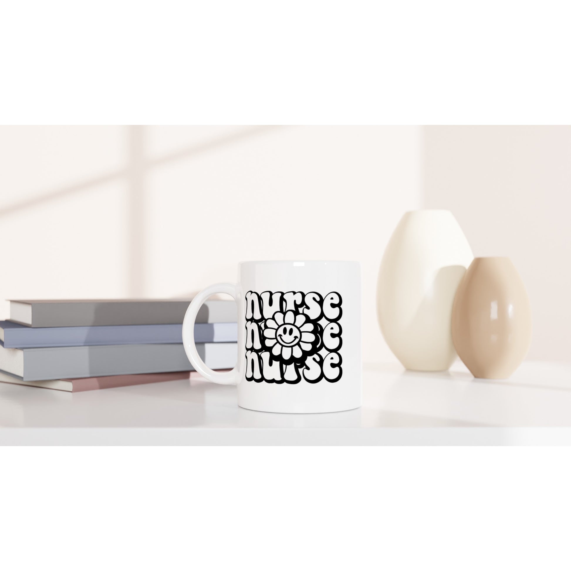 Nurse flower Nursing Nurse Medical Coffee Mug. This beautiful ceramic mug is perfect for any event of the day. Your morning coffee, a hot chocolate, or any other hot beverage you enjoy. The mug is glossy white and the prints come out beautifully and vividly on it. The print retains its quality and luster when used in both microwaves and the dishwasher.