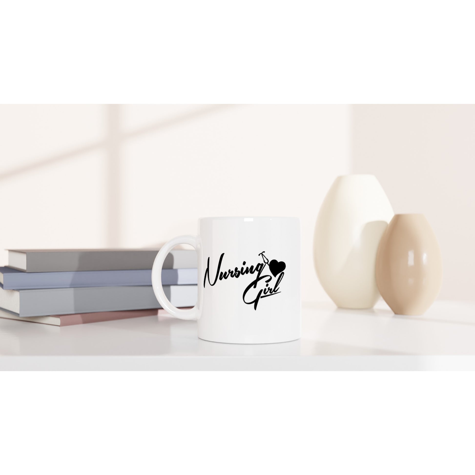 Nursing girl Nurse Nursing Medical Coffee Mug. This beautiful ceramic mug is perfect for any event of the day. Your morning coffee, a hot chocolate, or any other hot beverage you enjoy. The mug is glossy white and the prints come out beautifully and vividly on it. The print retains its quality and luster when used in both microwaves and the dishwasher.